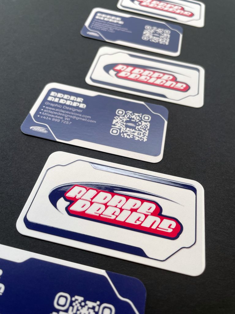 The Aldape Designs business card captures the brand’s “futuristic nostalgia” with its use of the border and rounded corners encapsulating a clean Y2K look.