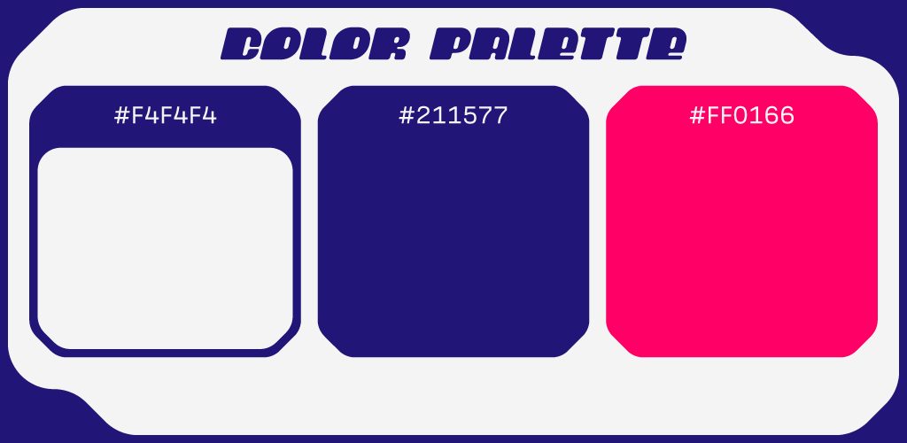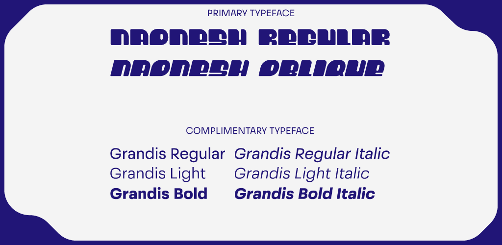 The Aldape Designs primary typeface is “Naonesh” designed by Abe “Xuveki” Ahmadi. Naonesh is a heavy, Y2K inspired variable display typeface, taking alot from early 2000’s cartoon aesthetics but with a cleaner look. “Grandis” is Aldape Design’s complimentary typeface that encapsulates simplicity and clarity.